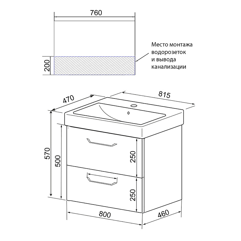 Тумба подвесная Azario с раковиной Ника 80 с раковиной Tempo 80 (CS00091369)