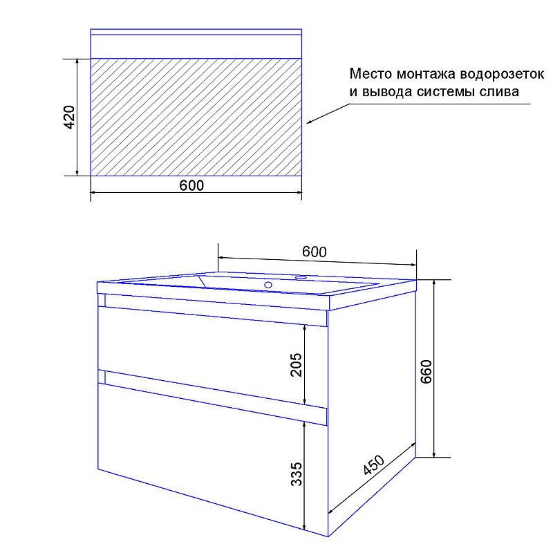 Тумба подвесная Azario с раковиной Velluto 60 с раковиной Слим 60 (CS00088601)