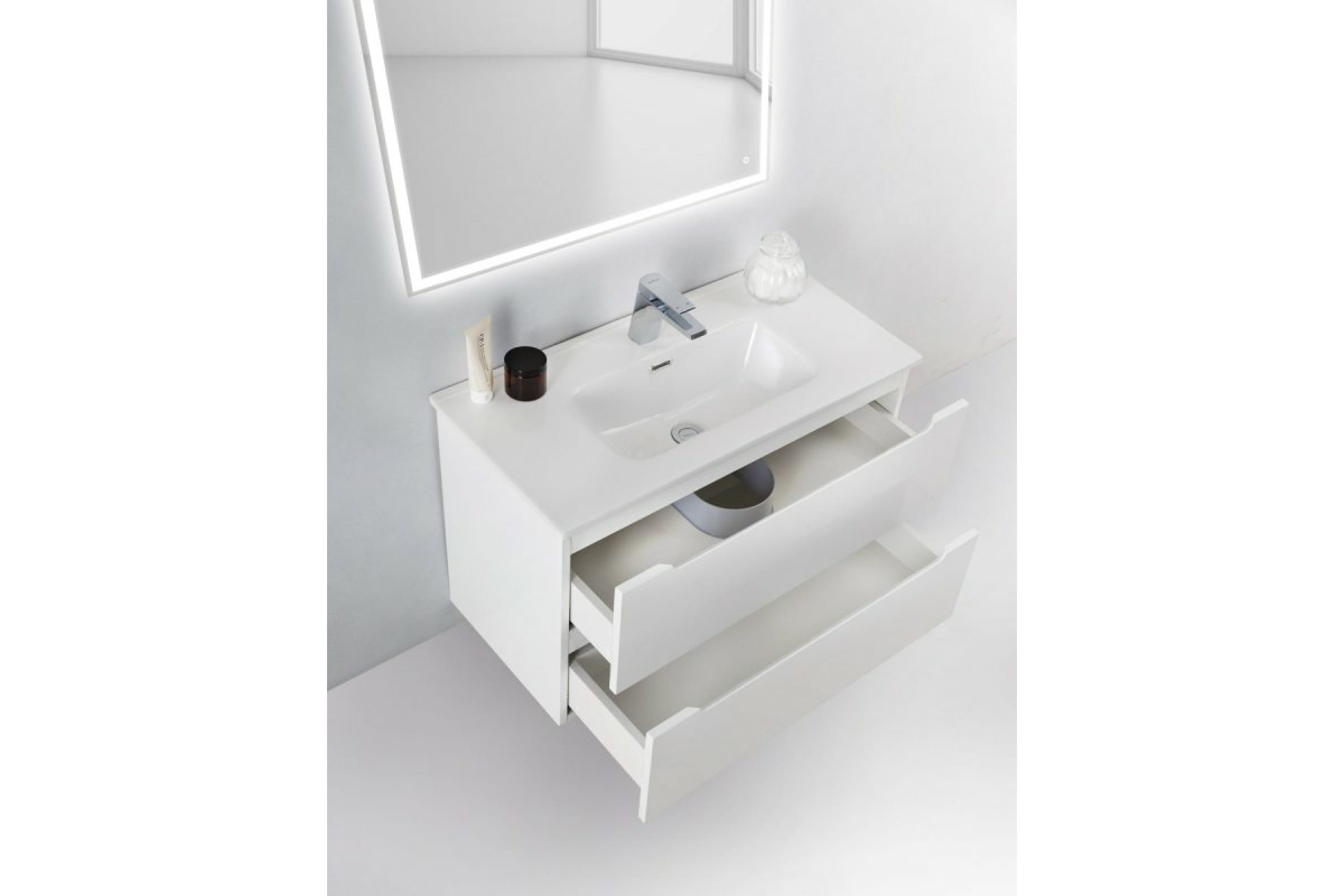 Подвесная тумба под раковину BelBagno Etna 39 80 ETNA39-800/390-2C-SO-BL-P с двумя выдвижными ящиками. Предназначена для использования в ванных комнатах с повышенной влажностью. Соответствует международным стандартам системы ISO, пройдены тестирование и контроль. Ящики оснащены доводчиками скрытого монтажа с функцией плавного закрывания.