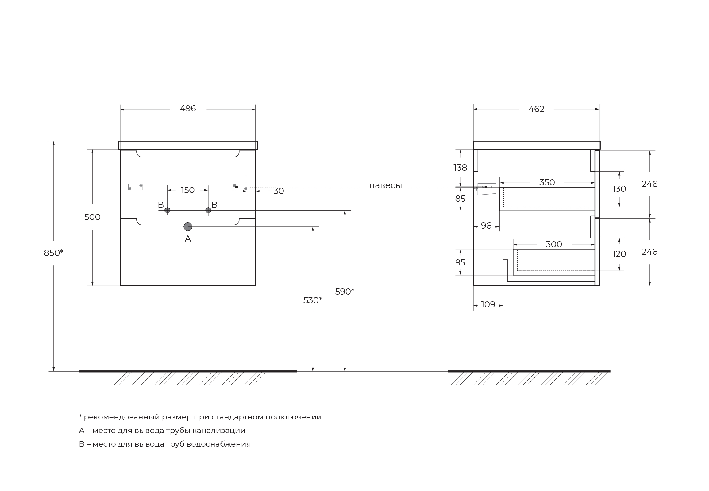 ETNA База под раковину подвесная с двумя выкатными ящиками с доводчиками Rovere Moro 500x460x500
