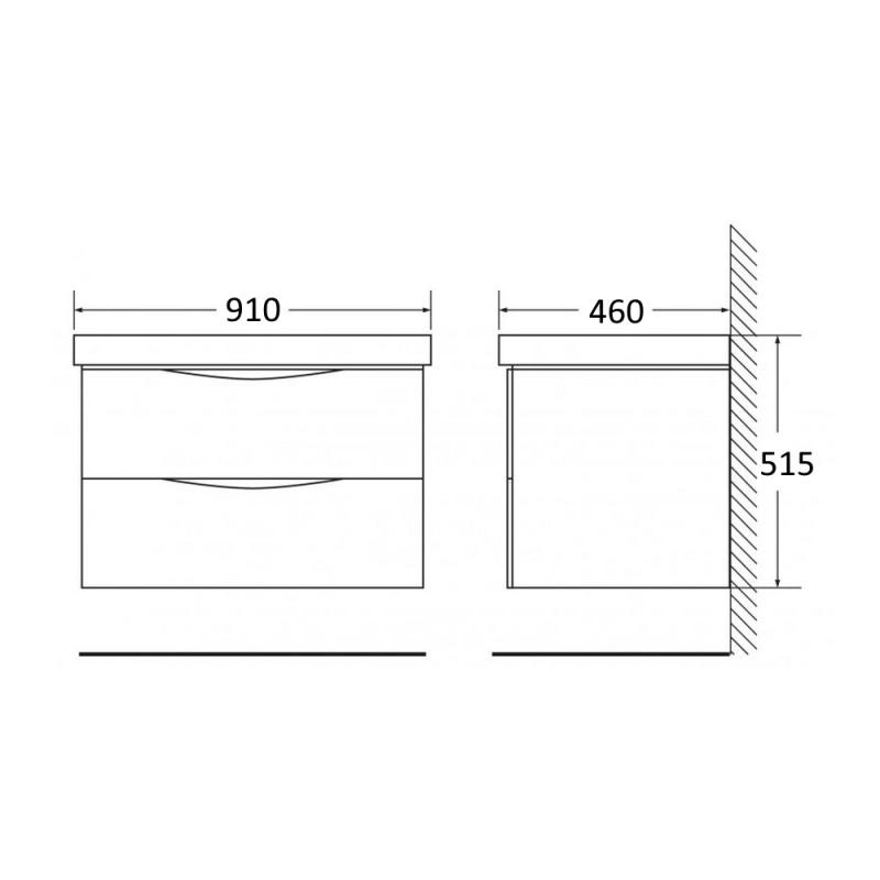 База под керамическую раковину подвесная с двумя выкатными ящиками с врезными (фрезерованными) ручками в плоскости фасада. Цвет Rovere Nature.