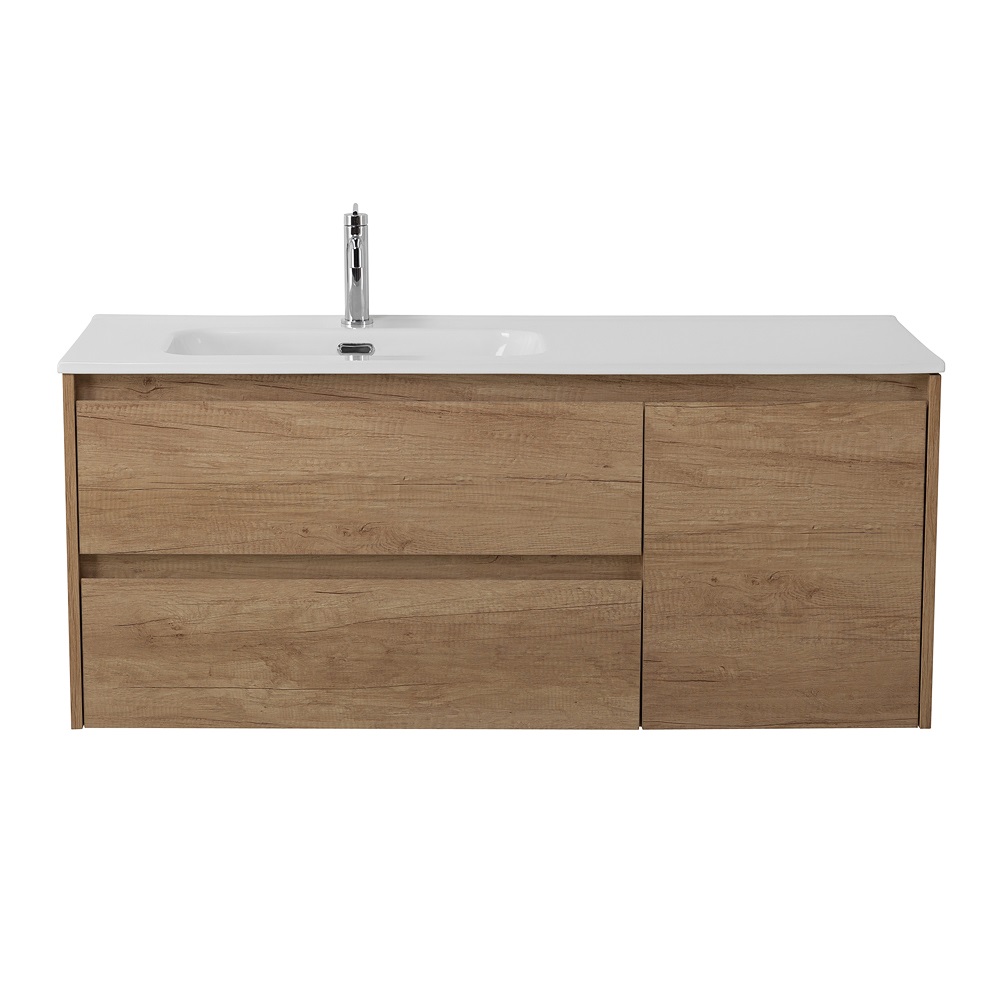 KRAFT База под раковину подвесная с двумя выкатными ящиками и одной распашной дверцей левосторонняя Rovere Nebrasca Nature 1200x460x500