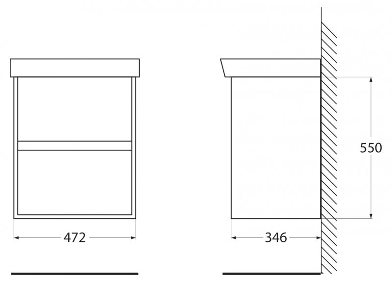 База под раковину подвесная с двумя выкатными ящиками с доводчиками