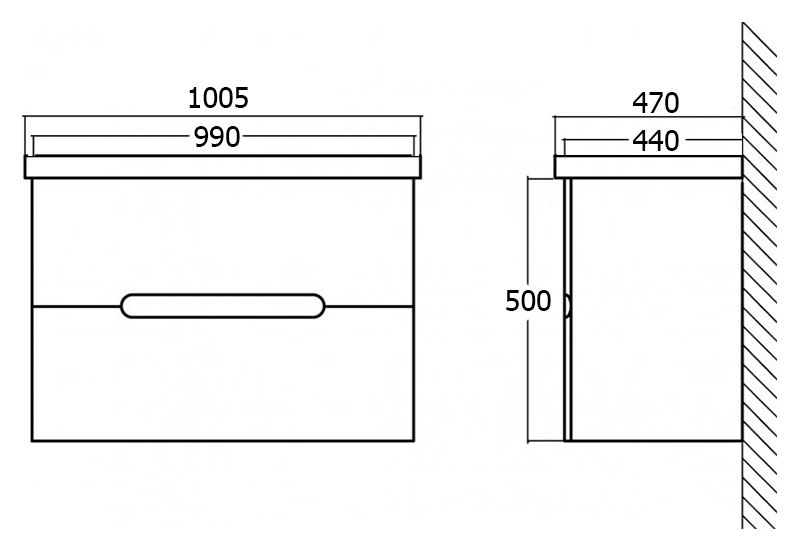 Габариты корпуса тумбы (ШхВхД): 99 х 50 х 44 см.