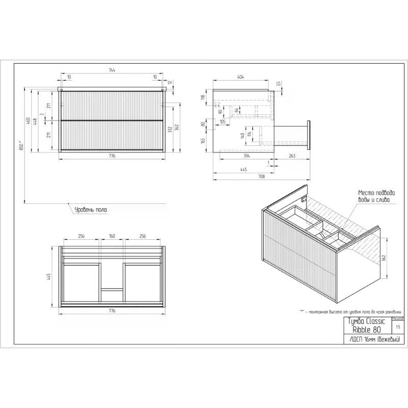 Тумба подвесная Cersanit Classic Ribble 80 для Como 80 коричневая (69280)