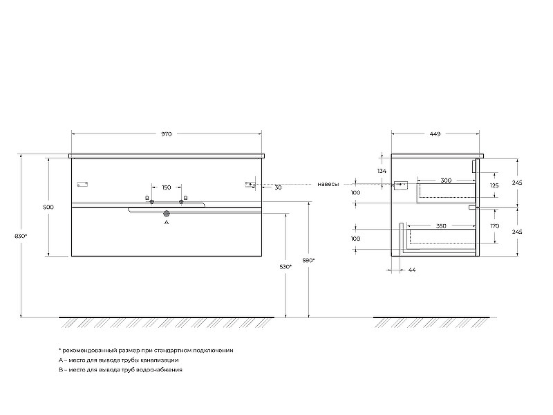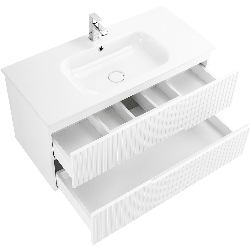 DUET База под раковину подвесная с двумя выкатными ящиками, Bianco Lucido, 97x450x50, DUET-1000-2C-SO-BL