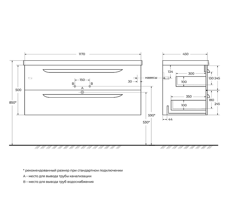 Тумба подвесная Cezares Eco 117x50 Sapfiro (ECO-CER-120-2C-SO-SPF-P)