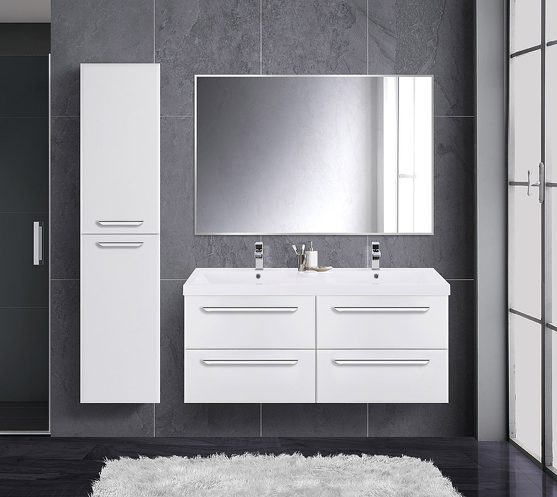 ECO База под раковину подвесная с четырьмя выкатными ящиками для раковины с двумя чашами, Bianco Lucido, 1198x472x50, ECO-1200-4C-SO-2-BL