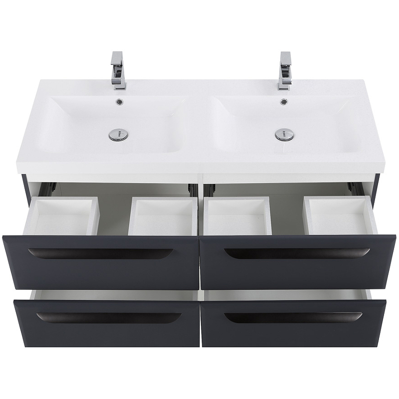 ECO База под раковину подвесная с четырьмя выкатными ящиками для раковины с двумя чашами, Grafito, 1198x472x50, ECO-1200-4C-SO-2-GR-P