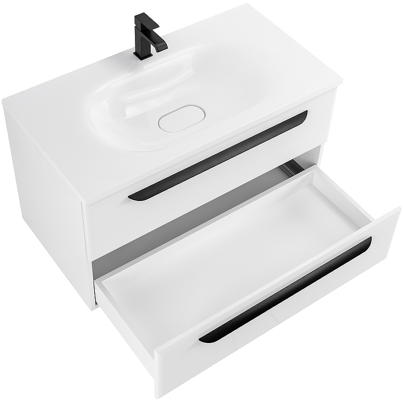 ECO База под раковину подвесная с двумя выкатными ящиками, Bianco Lucido, 898x472x50, ECO-90-2C-SO-BL