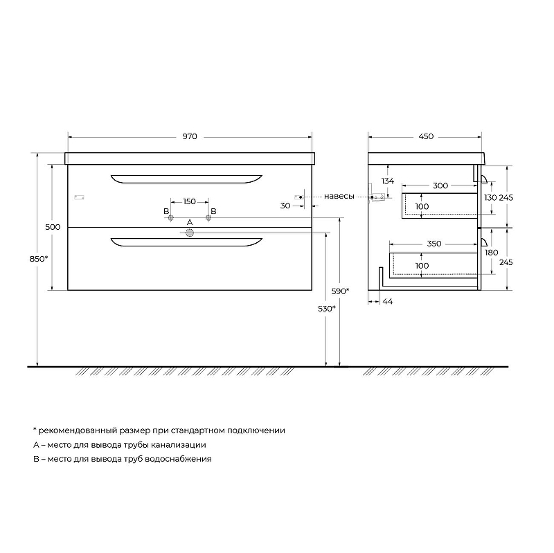 Тумба подвесная Cezares Eco 97x50 Sapfiro (ECO-CER-100-2C-SO-SPF-P)