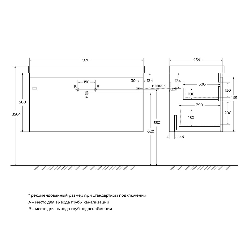 GIUBILEO База под раковину подвесная с одним выкатным ящиком, Bianco Lucido, 1000x460x50, GIUBILEO-100-1C-SO-BL