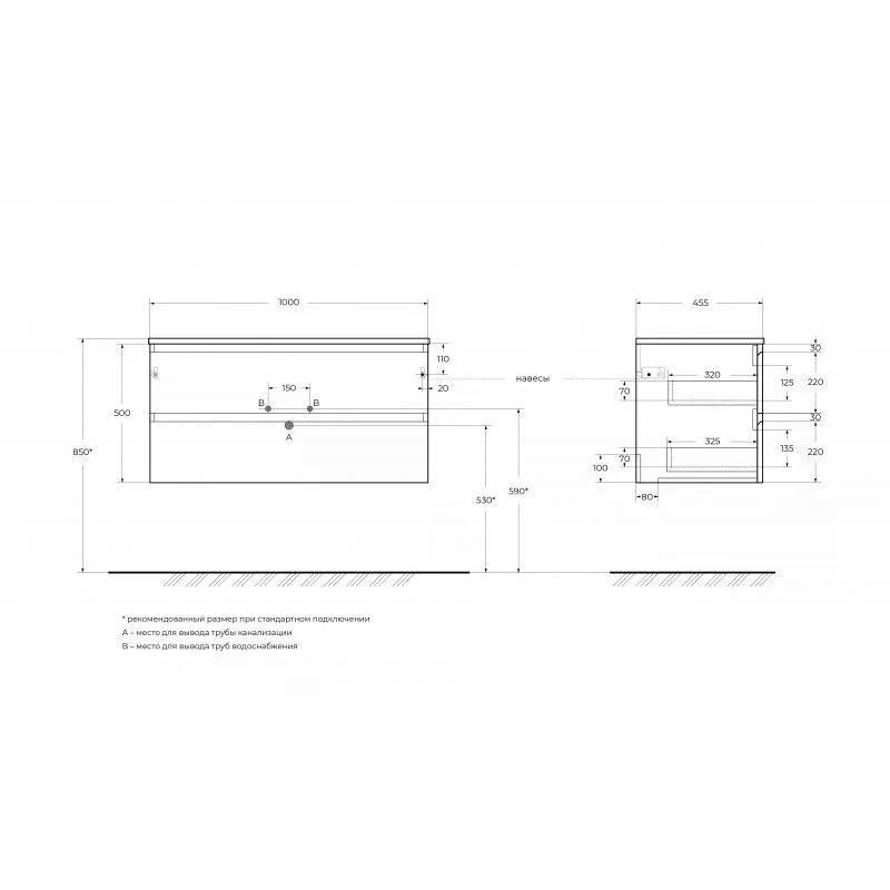 Тумба подвесная Cezares Kraft 1000x455x500 с фрезерованными ручками по всей длине фасада с двумя выкатными ящиками еловый матовый (KRAFT-1000-2C-SO-VO
