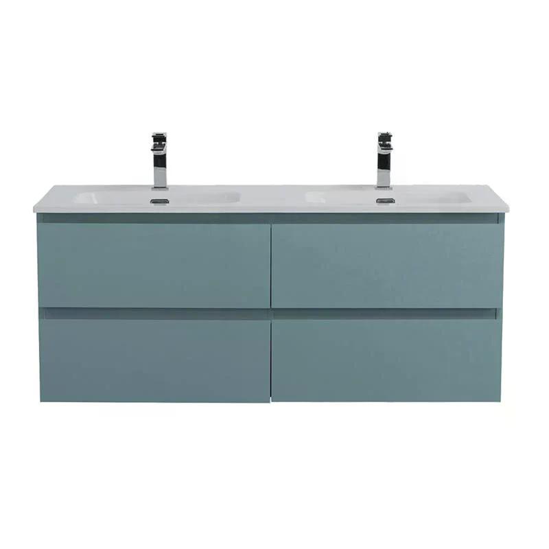 Тумба подвесная Cezares Kraft 1200x455x500 с фрезерованными ручками по всей длине фасада с четырьмя выкатными ящиками голубой матовый (KRAFT-1200-4C-S