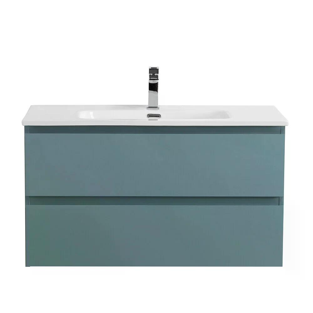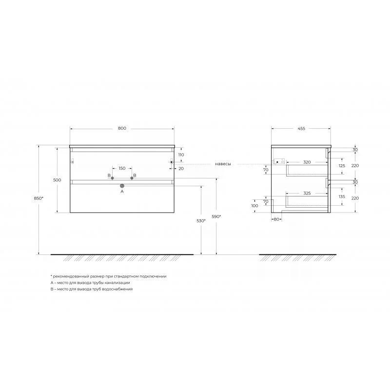 Тумба подвесная Cezares Kraft 800x455x500 с фрезерованными ручками по всей длине фасада с двумя выкатными ящиками голубой матовый (KRAFT-800-2C-SO-AO)