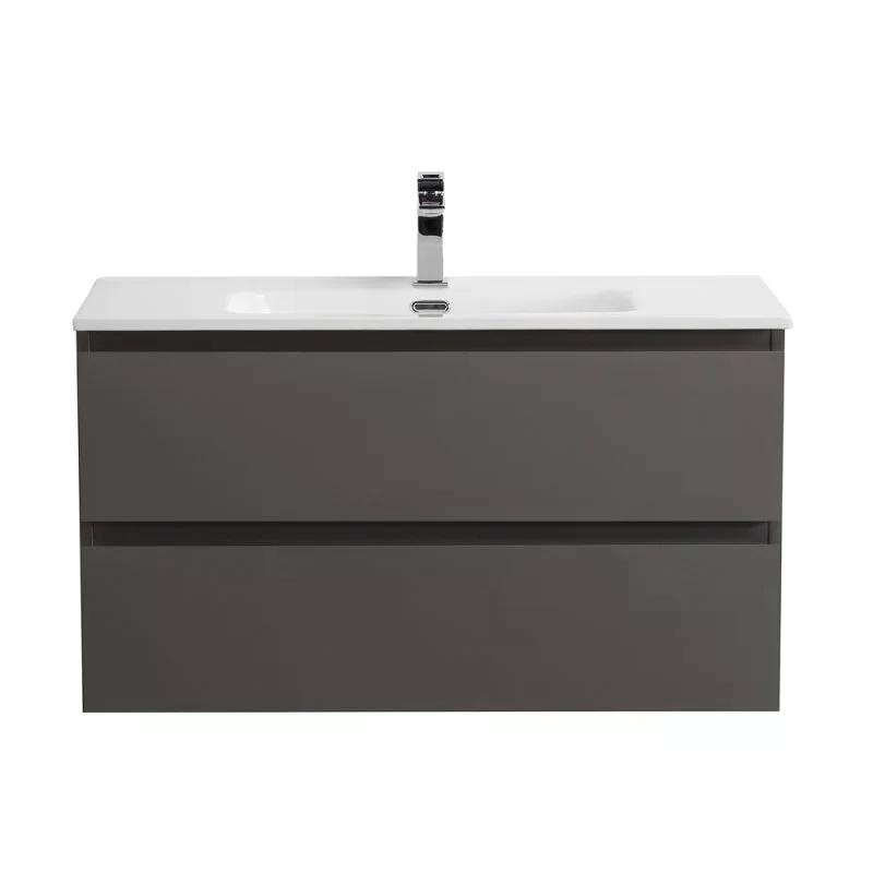 Тумба подвесная Cezares Kraft 800x455x500 с фрезерованными ручками по всей длине фасада с двумя выкатными ящиками Темно-Серый матовый (KRAFT-800-2C-SO