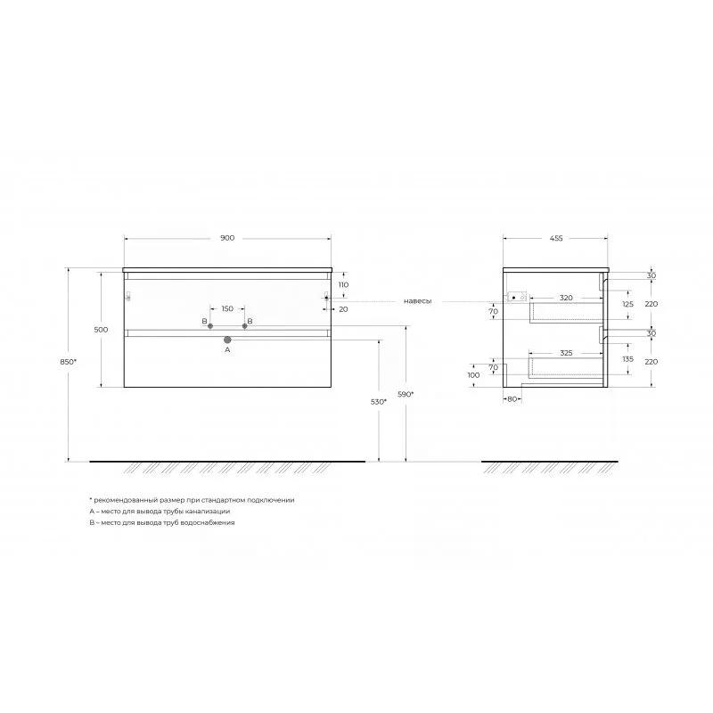 Тумба подвесная Cezares Kraft 900x455x500 с фрезерованными ручками по всей длине фасада с двумя выкатными ящиками голубой матовый (KRAFT-900-2C-SO-AO)