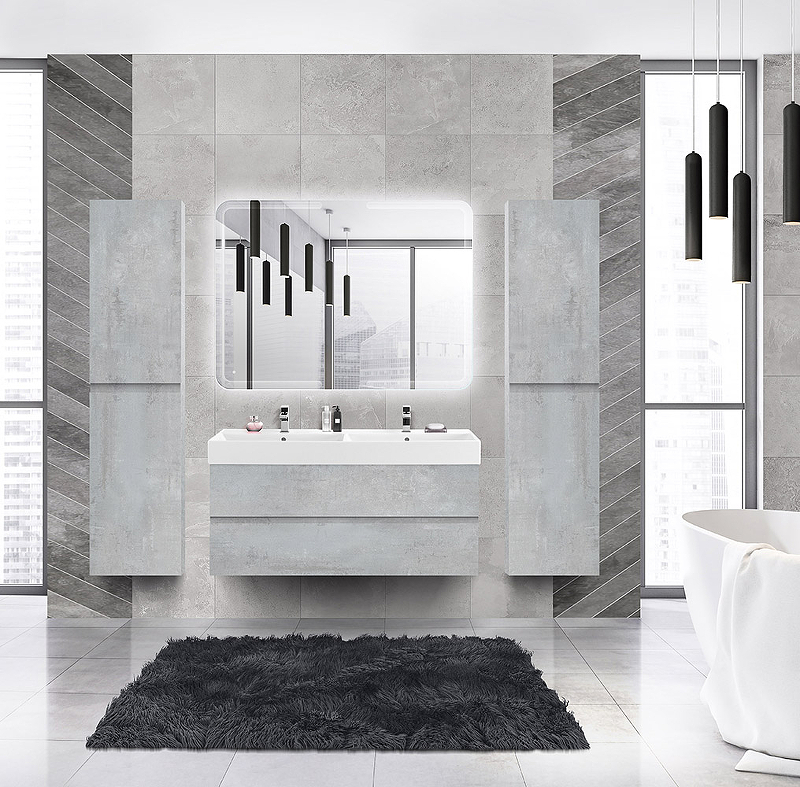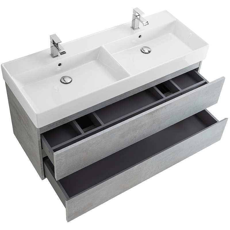 MOLVENO 46 База под раковину подвесная, под раковину с двумя чашами, с двумя выкатными ящиками, Beton, 1200x460x50, MOLVENO 46-120-2C-SO-2-BET