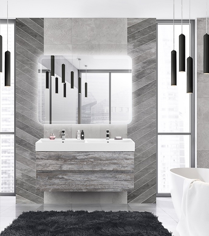 MOLVENO 46 База под раковину подвесная, под раковину с двумя чашами, с двумя выкатными ящиками, Legno Grigio, 1200x460x50, MOLVENO 46-120-2C-SO-2-LG