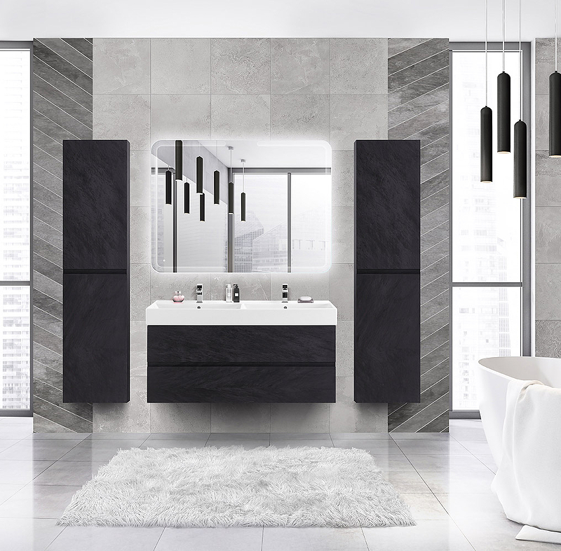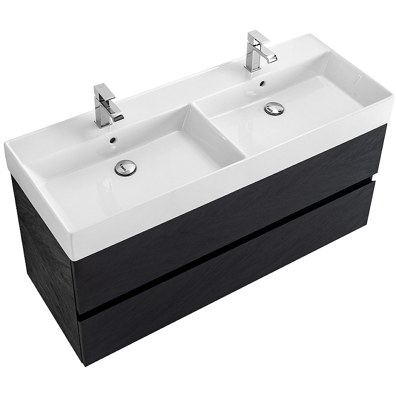 MOLVENO 46 База под раковину подвесная, под раковину с двумя чашами, с двумя выкатными ящиками, Nero, 1200x460x50, MOLVENO 46-120-2C-SO-2-NR