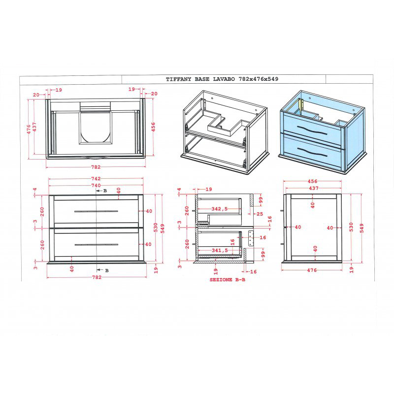 TIFFANY База подвесная под раковину с двумя выдвижными ящиками, 54948 Bianco opaco, 74x46x55