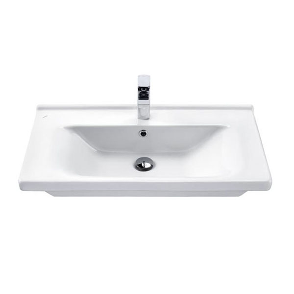 Тумба укомплектована прямоугольной раковиной завода Сантек Миранда шириной 80 см.