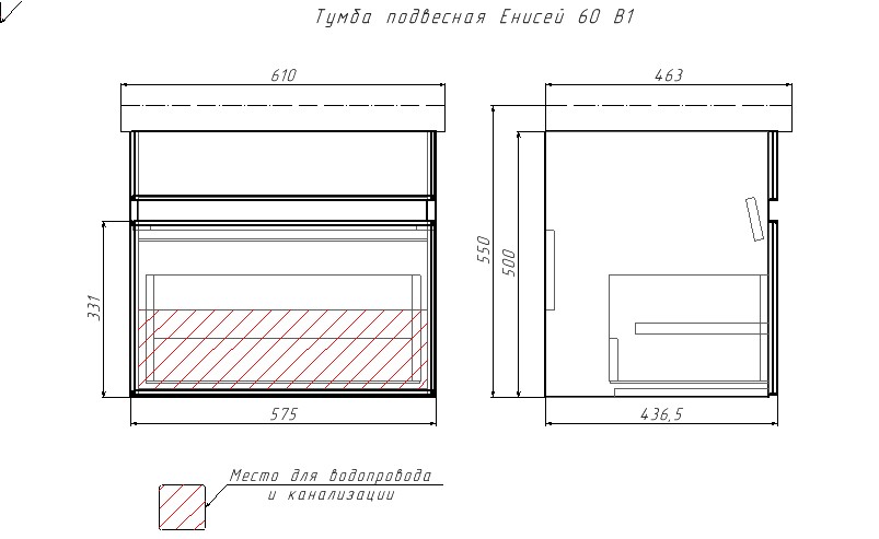 Дополнительная комплектация: С ящиком.Раковина встраиваемая Универсал Енисей 60