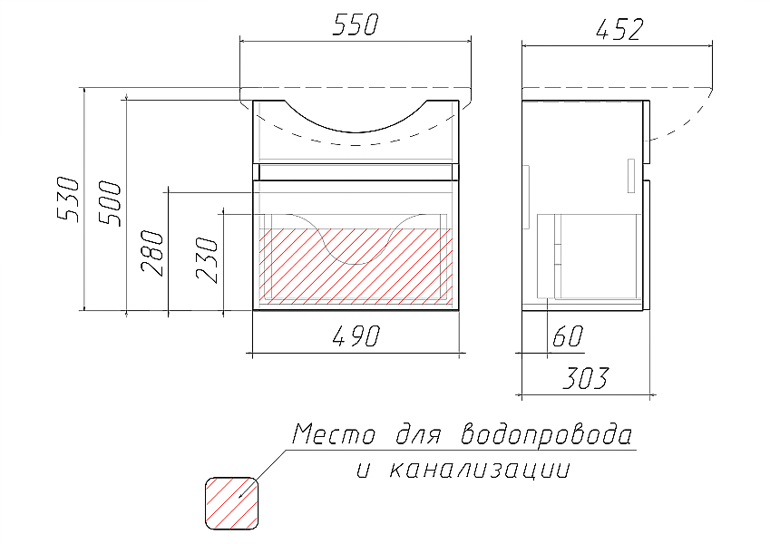 Дополнительная комплектация: Раковина встраиваемая Универсал Исеть 55