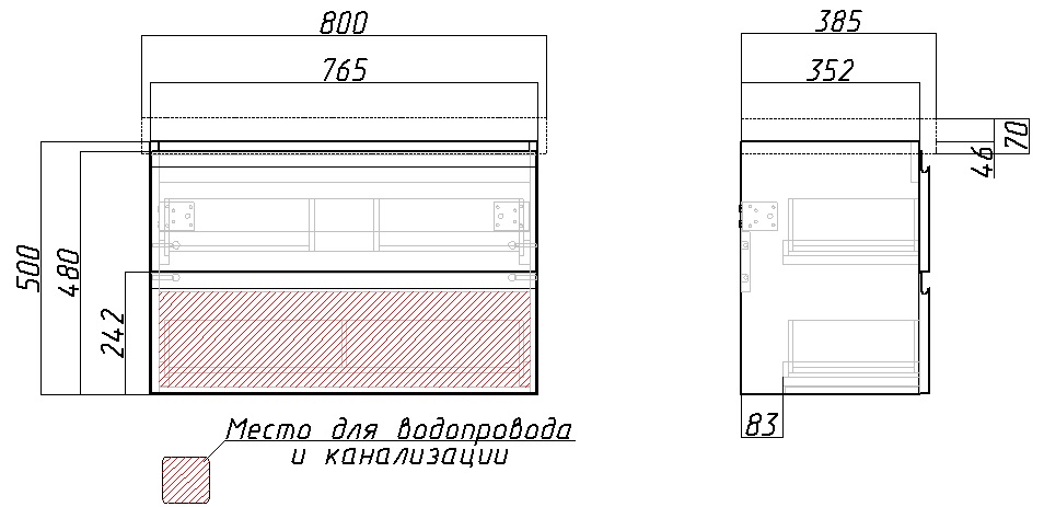 Тумба подвесная под умывальник «MODUO 80» имеет два выдвижных ящика. Пенал подвесной 40 без ящика, выполнен в левом и правом исполнении. Фасад всей серии изготовлен из ЛДСП и покрыт эмалью, корпус из ЛМДФ также покрыт влагостойкой эмалью. На мебели установлены доводчики и направляющие полного выдвижения.