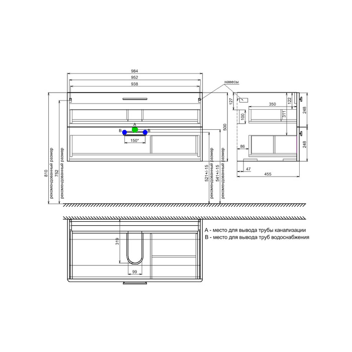 Размеры (ШхГхВ): 100,2х46,7х50 см.
