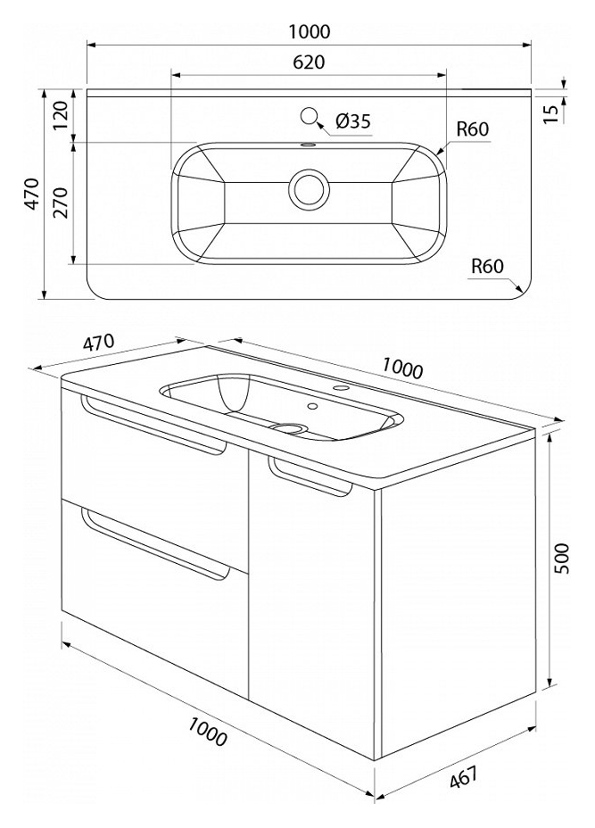 Размеры (ШхГхВ): 100х46,7х50 см.