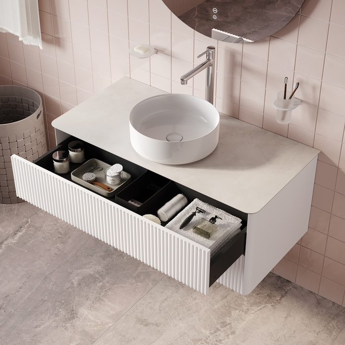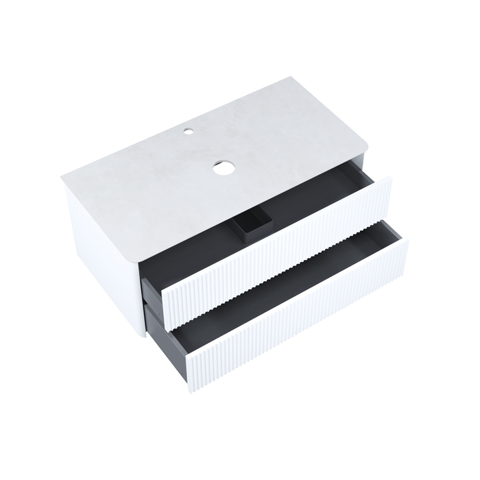 Тумба для ванной комнаты, подвесная, под столешницу из керамогранита, Aiger. Цвет: белый. Габариты тумбы (Ш*Г*В): 980*490*408 мм.