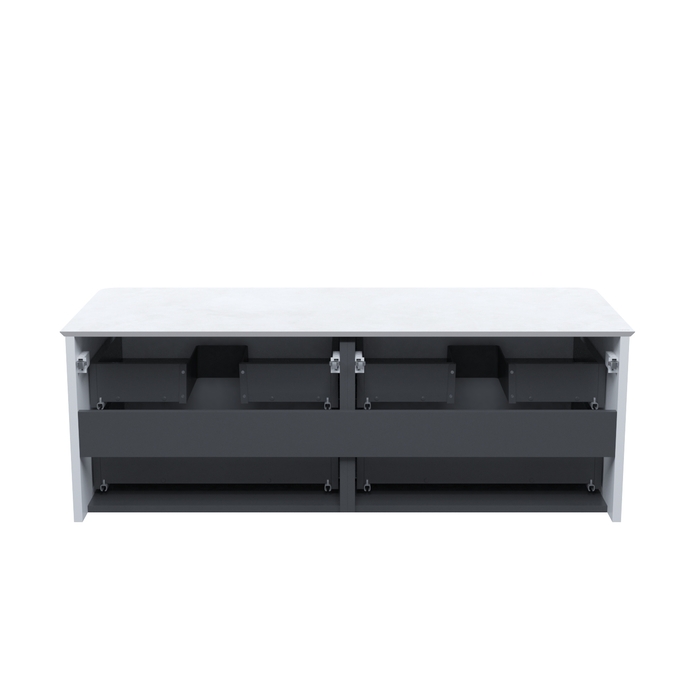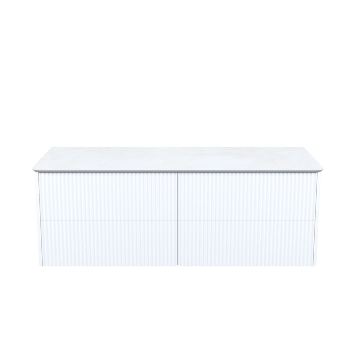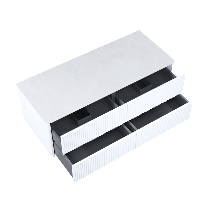 Тумба для ванной комнаты, подвесная, со столешницей без отверстий из керамогранита, Aiger. Цвет: белый. Габариты тумбы (Ш*Г*В): 1174*490*408 мм. Габариты столешницы (Ш*Г*В): 1194*502*11 мм. Габариты тумбы со столешницей (Ш*Г*В): 1196*502*420 мм. Фасады МДФ, покрытие - пленка ПВХ. Боковины МДФ, покрытие - пленка ПВХ. Четыре выдвижных ящика с механизмом плавного доведения. Фурнитура - Hettich, механизм открывания - Push-to-Open. Столешница из керамогранита, покрытие матовое.
