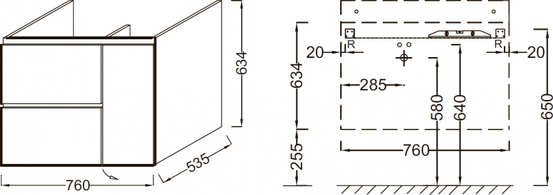 Тумба подвесная Jacob Delafon Soprano 76 дуб квебекский (EB1330-N08-E10)