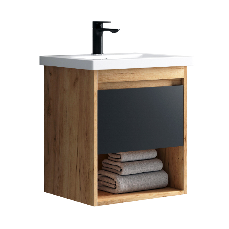 Тумба подвесная Melodia Этюд 50 (Como 50) 1 ящик графит/дуб золотой (MFR80036GT)
