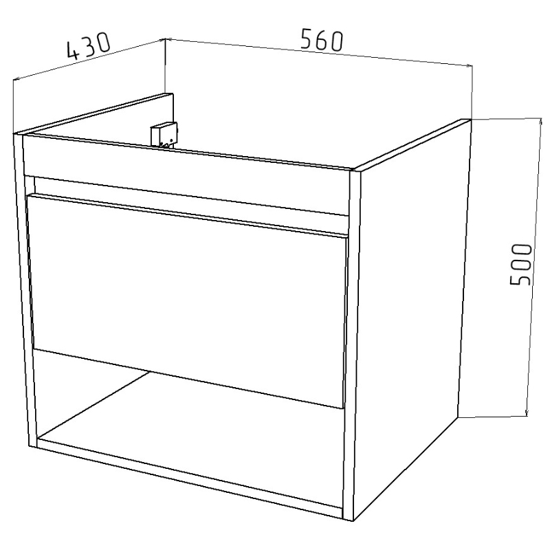 Подвесная тумба Этюд 60 торговой марки Melodia della vita с габаритными размерами 560х430х540 это современное и эргономичное решение для вашей ванной комнаты. Данная модель совместима с умывальником CERSANIT COMO 60 (58455). К данной тумбе также подойдет умывальник ТМ Santek Адриана 60 (24460). Конструкция тумбы включает в себя корпус с одним ящиком сверху и открытой нишей снизу. По центру ящика есть место для монтажа коммуникаций. Поставляется в собранном виде в комплекте с креплением к стене. Умывальник приобретается отдельно.