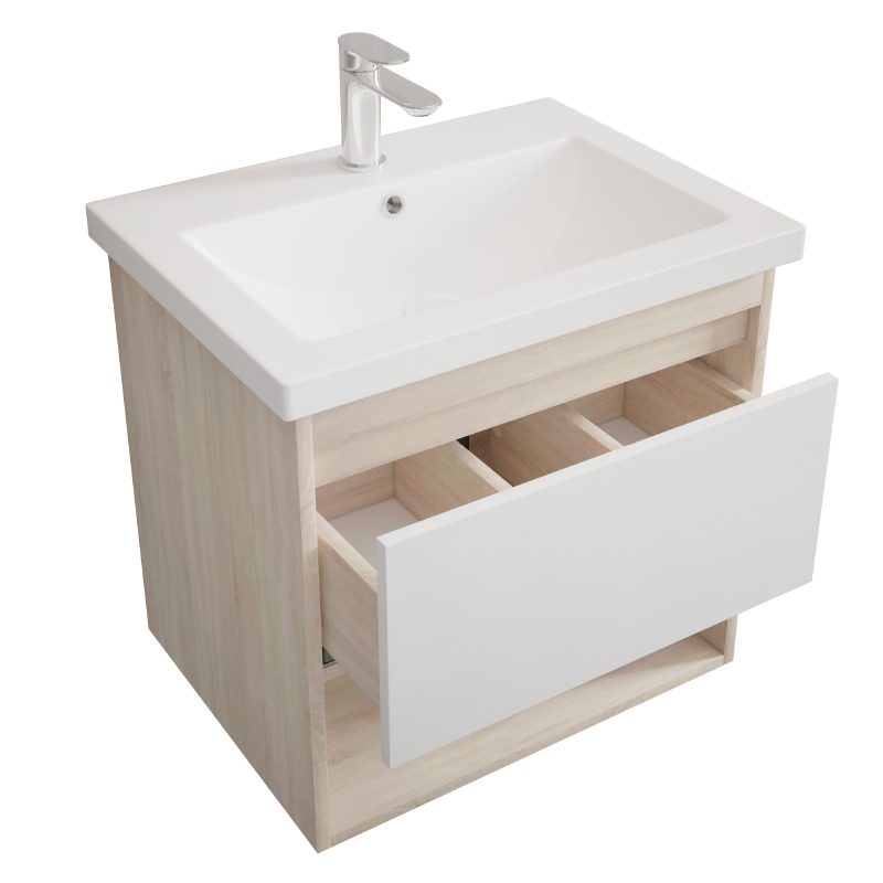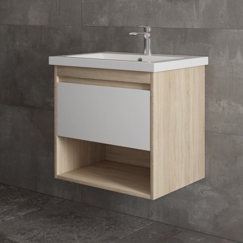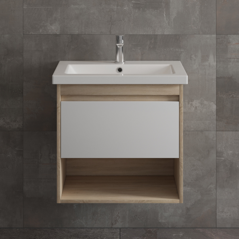 Тумба подвесная Melodia Этюд 60 (Como 60) 1 ящик белая/сонома (MFR80037SW)