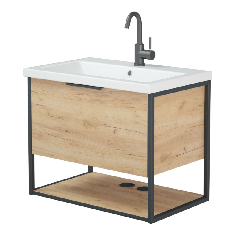 Тумба подвесная Melodia Лофт 70 (Como 70/Фостер 70) 1 ящик дуб крафт зол./черный (MFR80108OK)