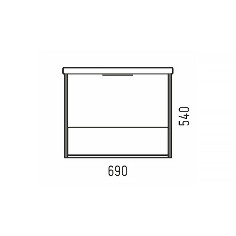 Подвесная тумба Лофт 70 торговой марки Melodia della vita с габаритными размерами 688х440х540 это современное и эргономичное решение для вашей ванной комнаты. Данная модель совместима с умывальником CERSANIT COMO 70 (57994) и Kirovit Фостер 70 (89470). К данной тумбе также подойдет умывальник ТМ Santek Адриана 70 (24461). Конструкция тумбы включает в себя корпус с ящиком сверху и открытая полка снизу. Ящик высотой 300 мм имеет выпил под коммуникации и установлен на направляющие скрытого монтажа с доводчиками. Фасад ящика с чёрной металлической ручкой. Главное особенностью этой тумбы является наличие по бокам железных рамок окрашенных в чёрный цвет в стиле ""ЛОФТ"". Тумба навесная на подвесах Scarpi. Поставляется в собранном виде в комплекте с креплением к стене. Умывальник приобретается отдельно.