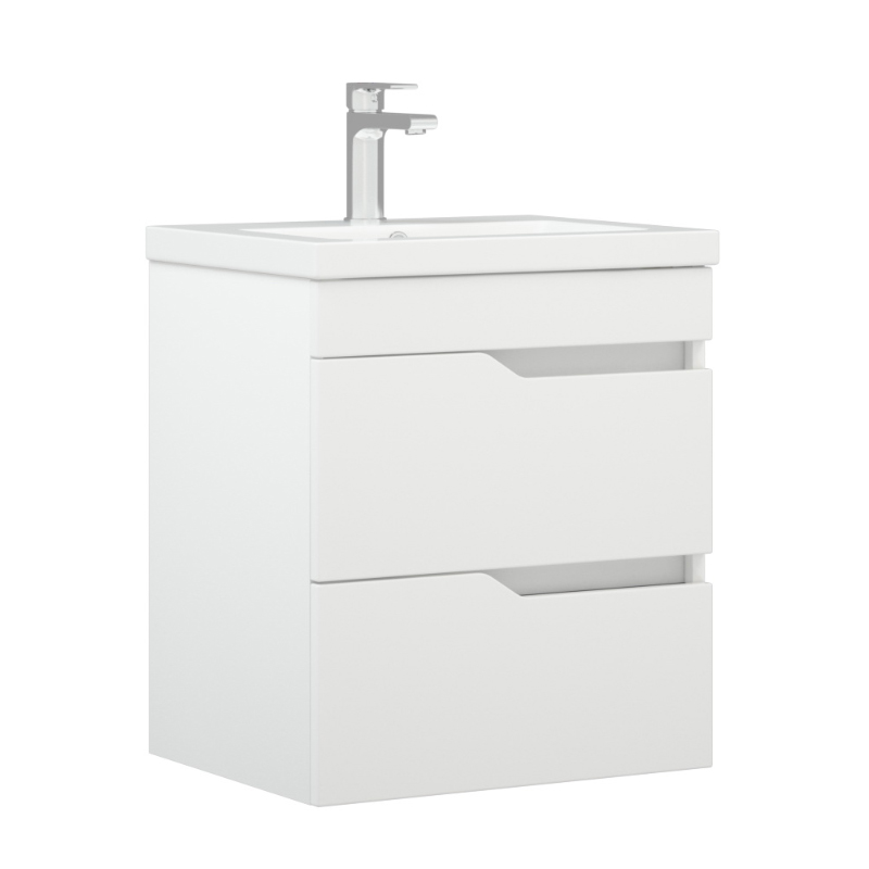 Подвесная тумба Лотос 50 торговой марки Melodia della vita с габаритными размерами 460х380х590 это современное и эргономичное решение для вашей ванной комнаты. Данная модель совместима с умывальниками Kirovit Фостер 50 (103537) и CERSANIT COMO 50 (104208). Конструкция тумбы включает в себя корпус с двумя ящиками на шариковых направляющих. Высота ящиков 110 мм. Вместо ручки - плавный эргономичный спил. Поставляется в собранном виде в комплекте с креплением к стене. Умывальник приобретается отдельно.
