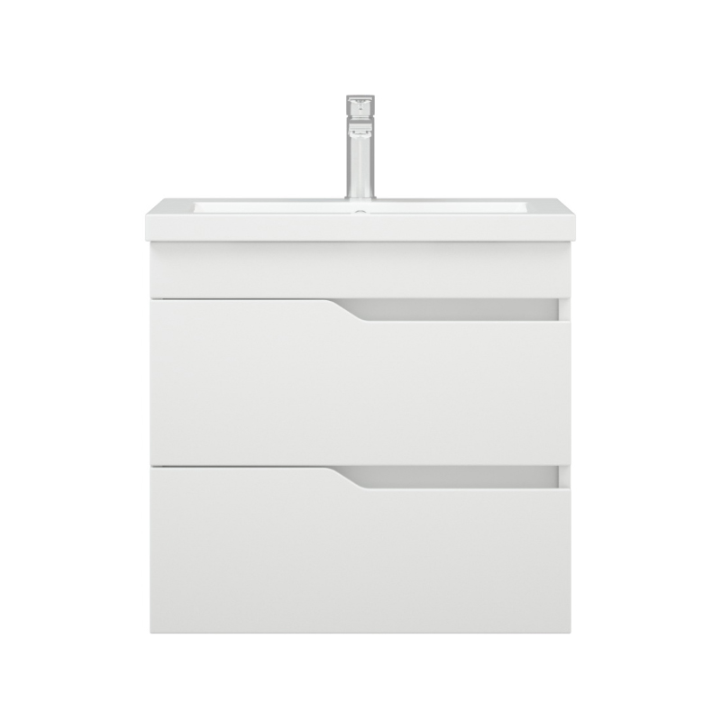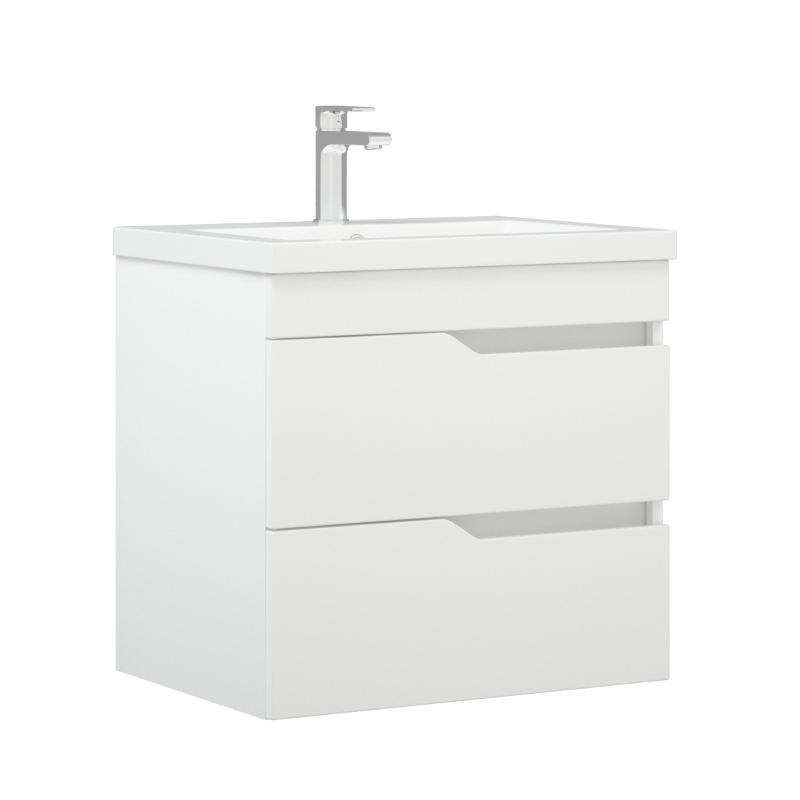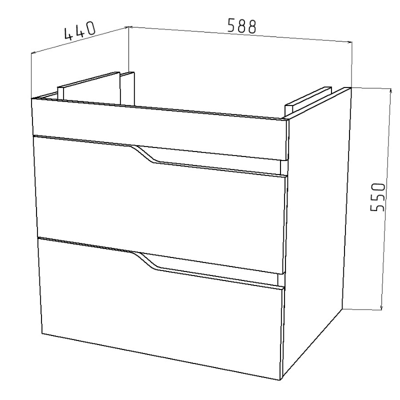 Подвесная тумба Лотос 60 торговой марки Melodia della vita с габаритными размерами 588х440х590 это современное и эргономичное решение для вашей ванной комнаты. Данная модель совместима с умывальником CERSANIT COMO 60 (58455), а так же умывальники из литьевого мрамора: MARRBAXX Дакота V30, Madera Classica 60, Marko Слим 60, Paolo Alba 600. К данной тумбе также подойдет умывальник ТМ Santek Адриана 60 (24460). Конструкция тумбы включает в себя корпус с двумя ящиками на шариковых направляющих. Высота ящиков 110 мм. Вместо ручки - плавный эргономичный спил. Поставляется в собранном виде в комплекте с креплением к стене. Умывальник приобретается отдельно.