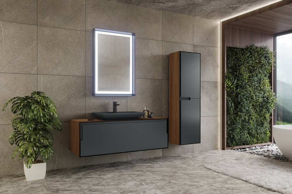 Тумба подвесная Orka Craft 1200x500x400 с раковиной орех/антрацит (5001127)