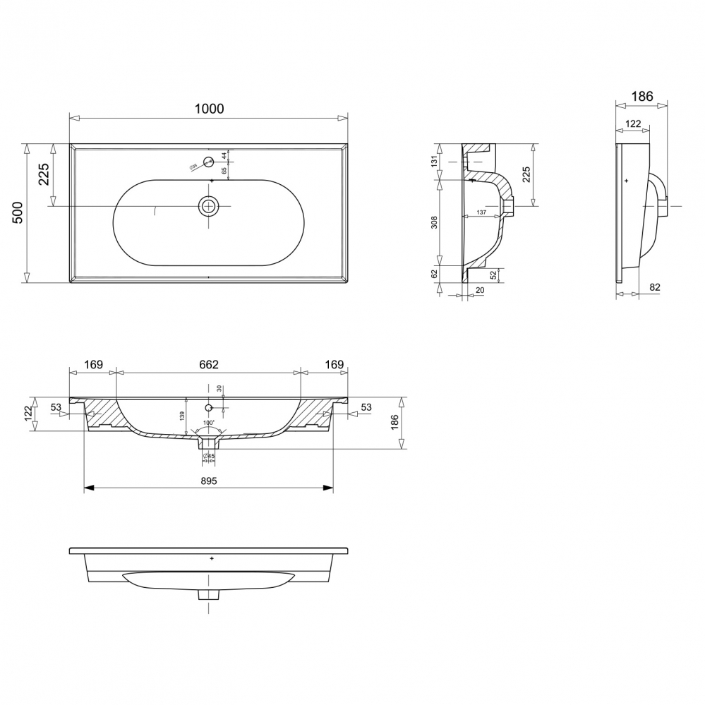 Тумба подвесная Orka Likya 1000x500x460 с раковиной белый матовый (5002490)
