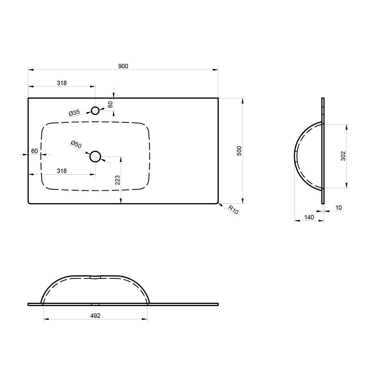 Тумба подвесная Orka Lisbon 900x500x350 с раковиной серый матовый (5001430)