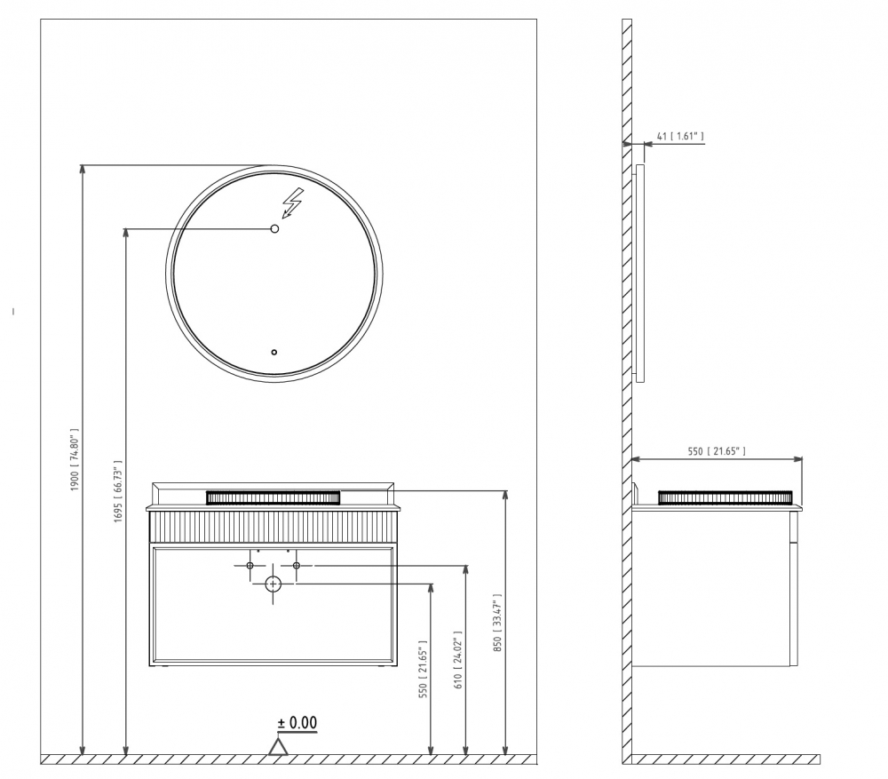 Тумба подвесная Orka Molino 820x550x530 с раковиной белый матовый (5004580)