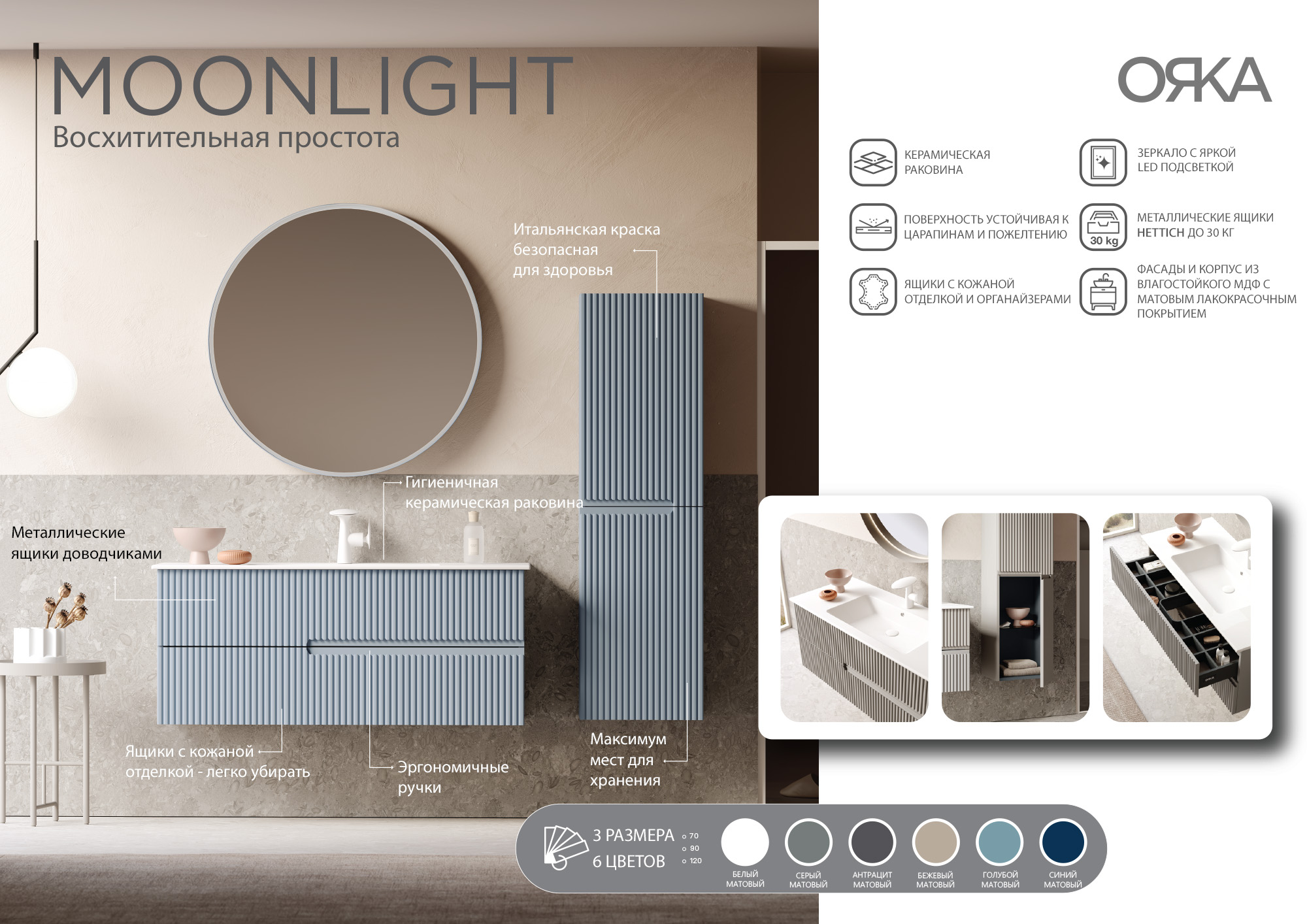 Тумба подвесная Orka Moonlight 710x510x510 с раковиной белый матовый (5001491)