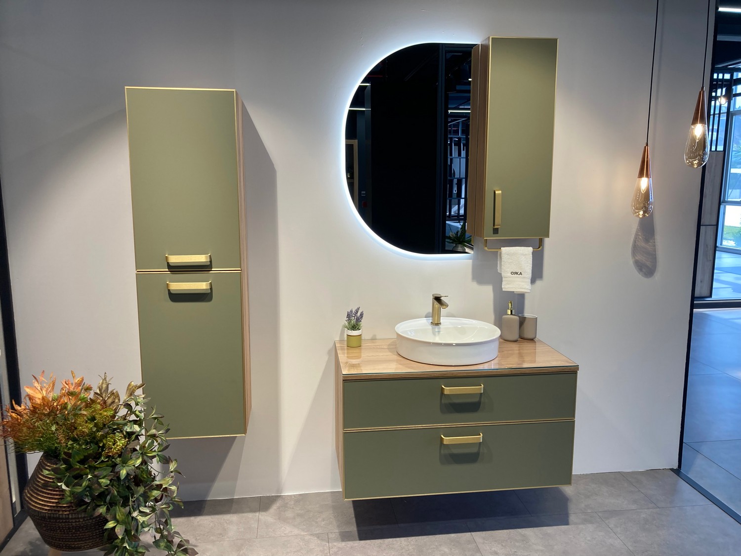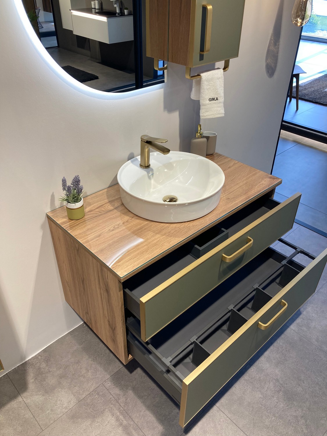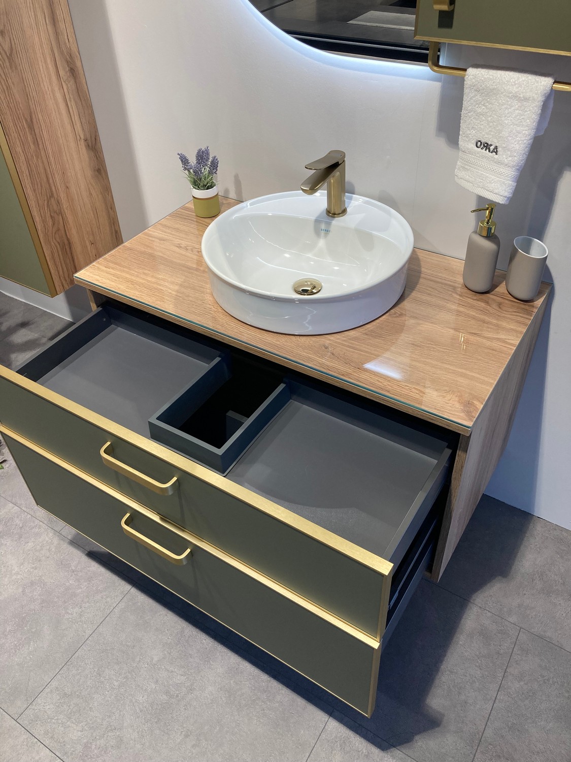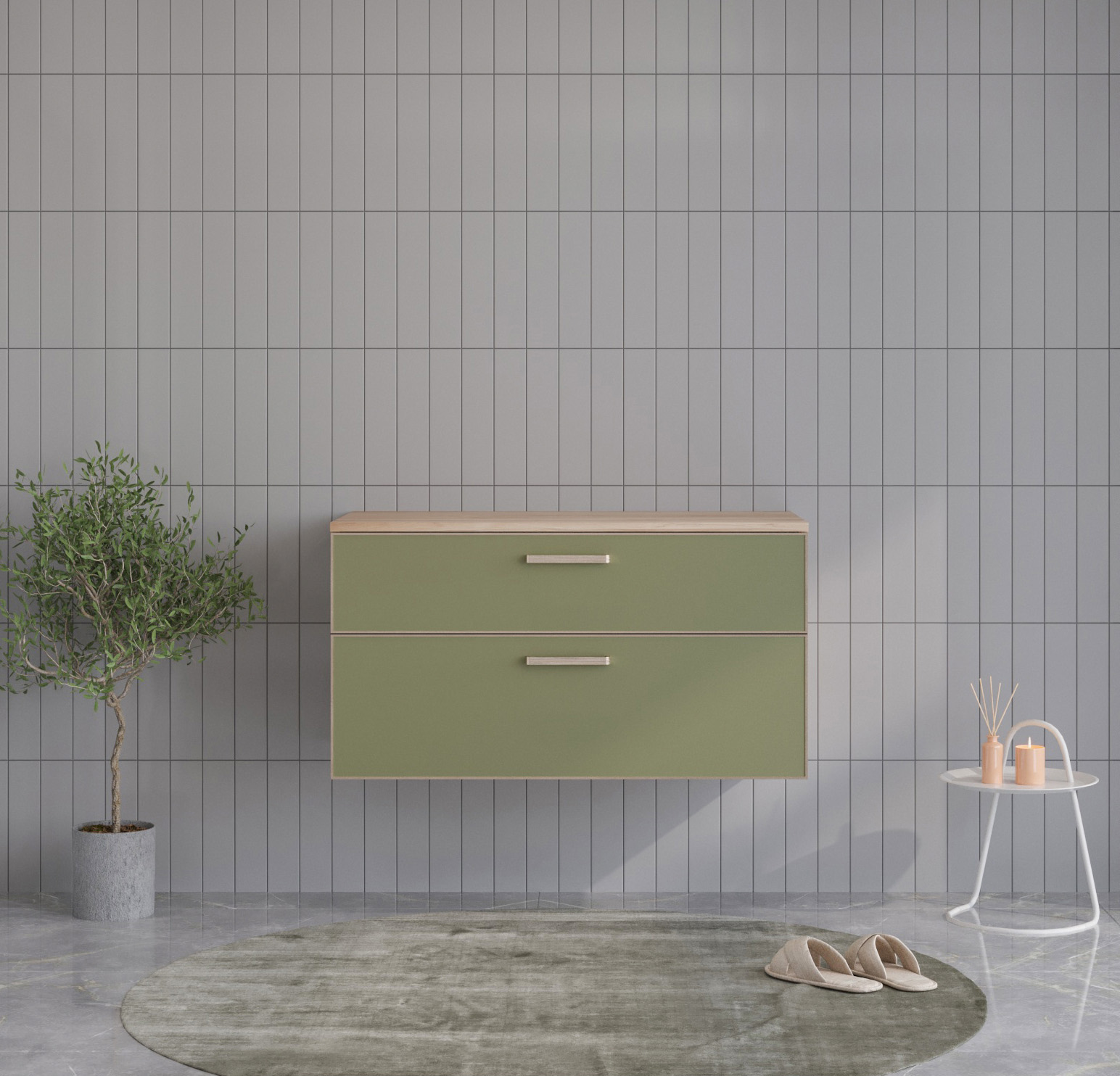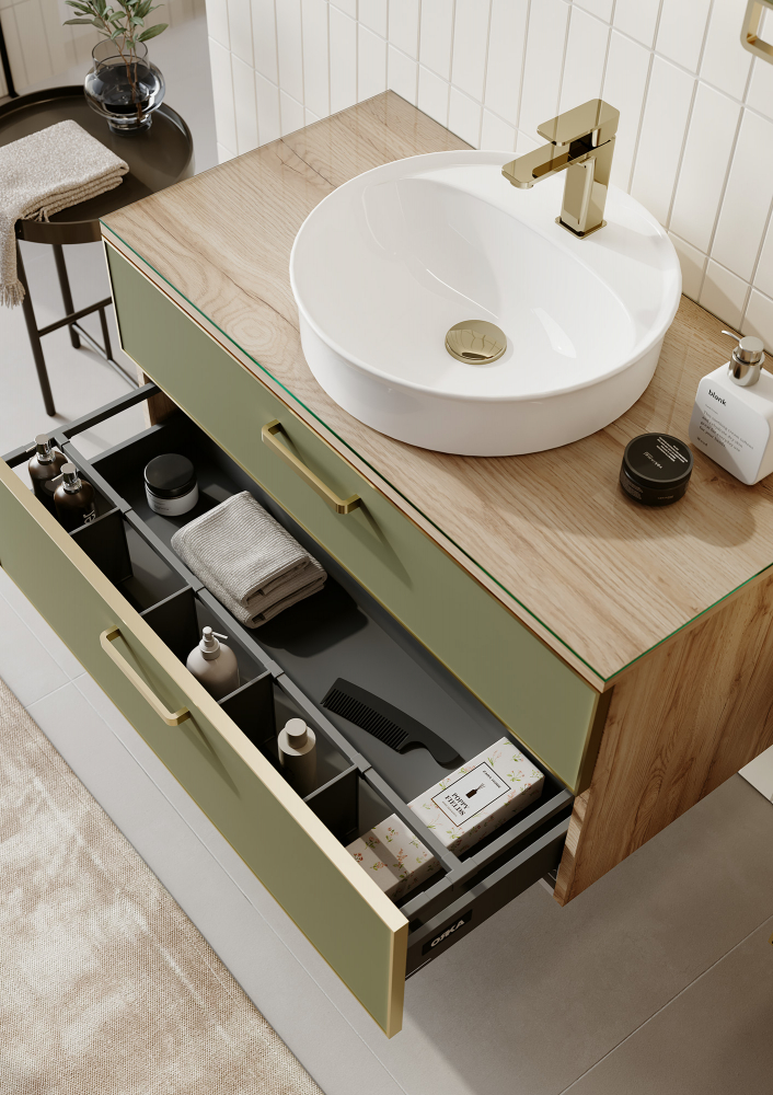 Тумба подвесная Orka Salerno 960x500x520 зеленый матовый, светлое дерево (3008781)