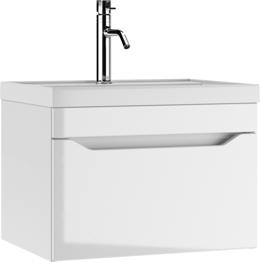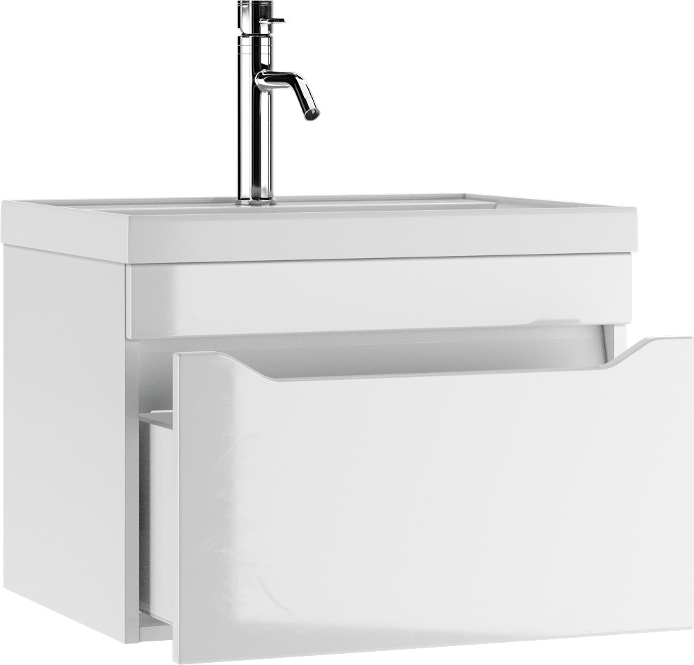 Тумба подвесная под умывальник Bazis 60 Ева с одним ящиком В1 Айсберг Домино (DA5901T)