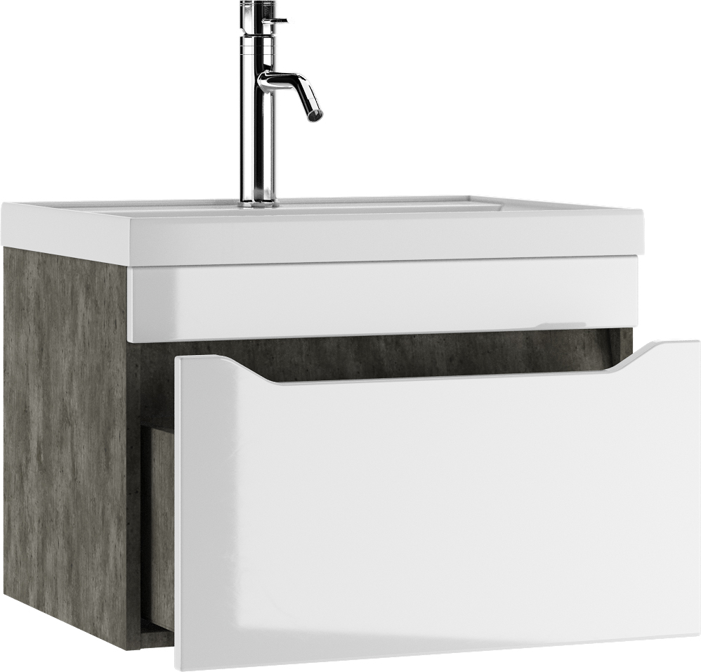 Тумба подвесная под умывальник Bazis 60 Ева с одним ящиком В1 Бетон Айсберг Домино (DA5905T)