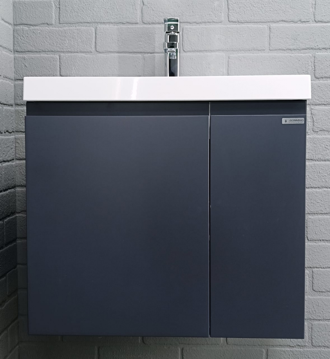 Тумба подвесная под умывальник ""Bazis 60"" Graffo графит матовый без ящика Домино станет замечательным дополнением интерьера вашего уютного пространства. Тумбочка в ванную комнату серии Graffo отличается стильным дизайном и элегантным внешним видом. Фасады выполнены из МДФ с эмалевым покрытием, что придает изделию современный вид и устойчивость к влаге. Корпус сделан из надежного ЛДСП, обеспечивающего долговременное использование мебели. Подвесная тумба предназначена для установки под раковину. Это практичное решение экономит место на полу и создает ощущение легкости в помещении, что особенно важно для небольших пространств. Одним из главных преимуществ является встроенная полка внутри, идеально подходящая для хранения мелких предметов. Распашные дверцы снабжены петлями BOYRD с доводчиком, что гарантирует плавное закрывание и отсутствие хлопков даже при быстром открытии или закрытии. Благодаря этим технологиям достигается высокая надежность и комфорт в использовании. Кроме того, изделие поставляется уже в собранном виде — монтаж займет минимум времени и усилий.